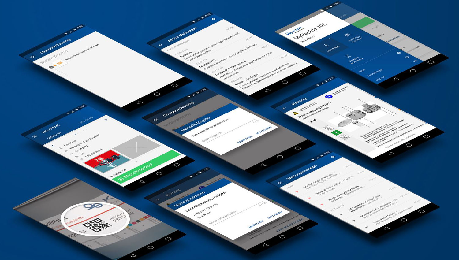 In addition to the press status, the app provides a raft of live information from the running production, including even energy consumption and the equivalent carbon emissions per 1,000 sheets. With the batch data function, consumables such as paper and ink can be tracked either manually or by way of QR codes and assigned to the relevant job. The place of consumption, for example a certain inking unit, is determined automatically and saved in the data record. Whether inks, substrates, blankets or plates: All data are made available for tracing purposes or inventory management – immediately and without further intervention. The data are sent from the mobile device to the console, and automatically passed on via LogoTronic Professional and JMF to the company management information software.